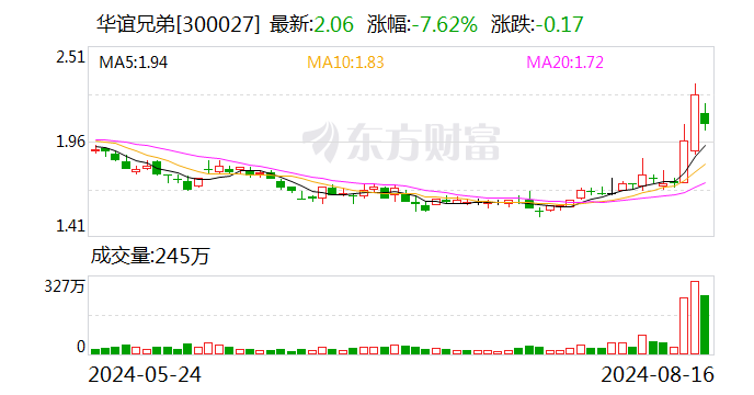 华谊兄弟(SZ300027,收盘价:2.06元)8月18日晚间发布公告称,公司第六届第17次董事会临时会议于2024年8月18日在北京市朝阳门外大街18号丰联广场B座9层会议室以现场和通讯相结合的方式召开。审议了《关于取消公司向特定对象发行股票方案的议案》等。